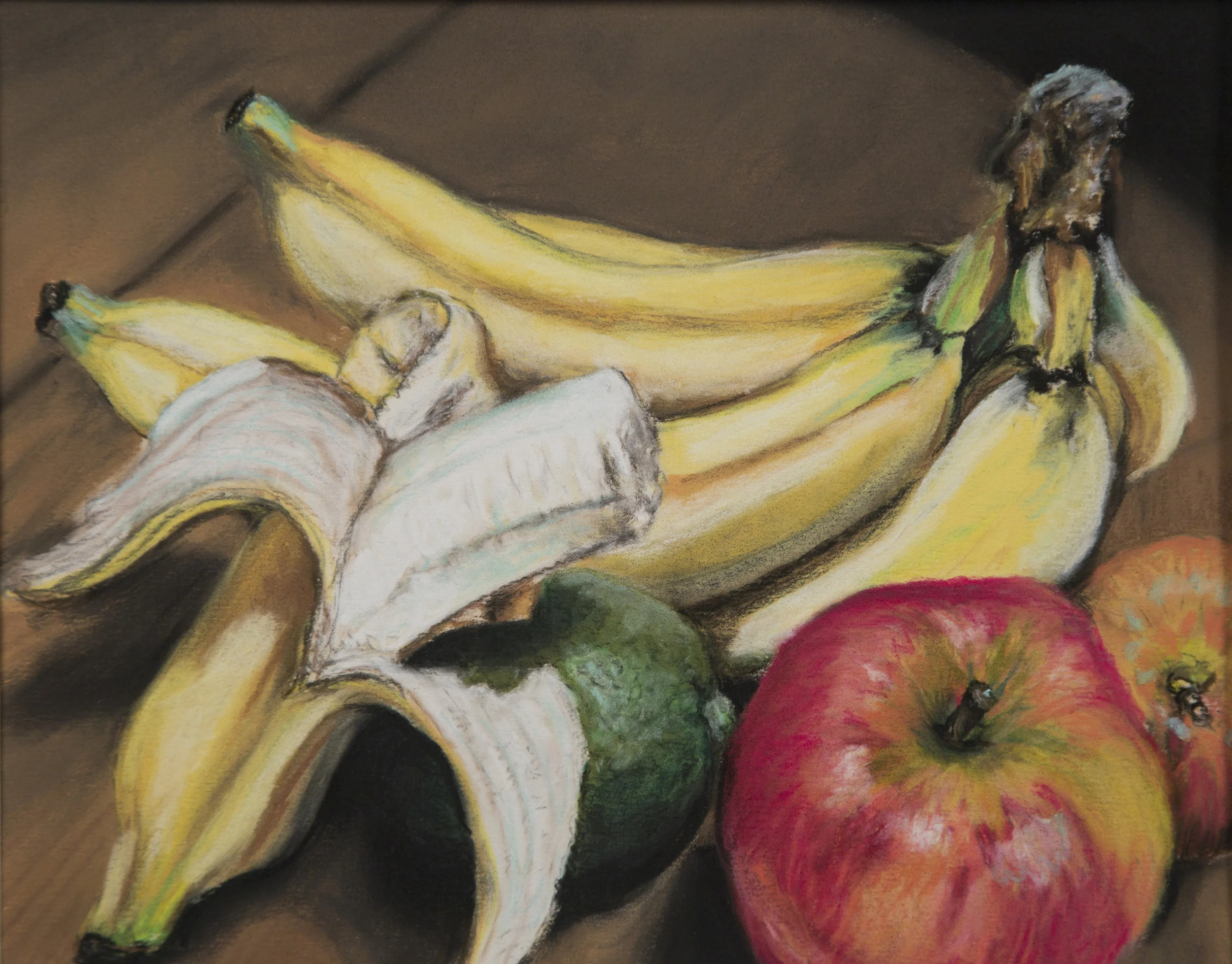 Bananas, apples, and a lime